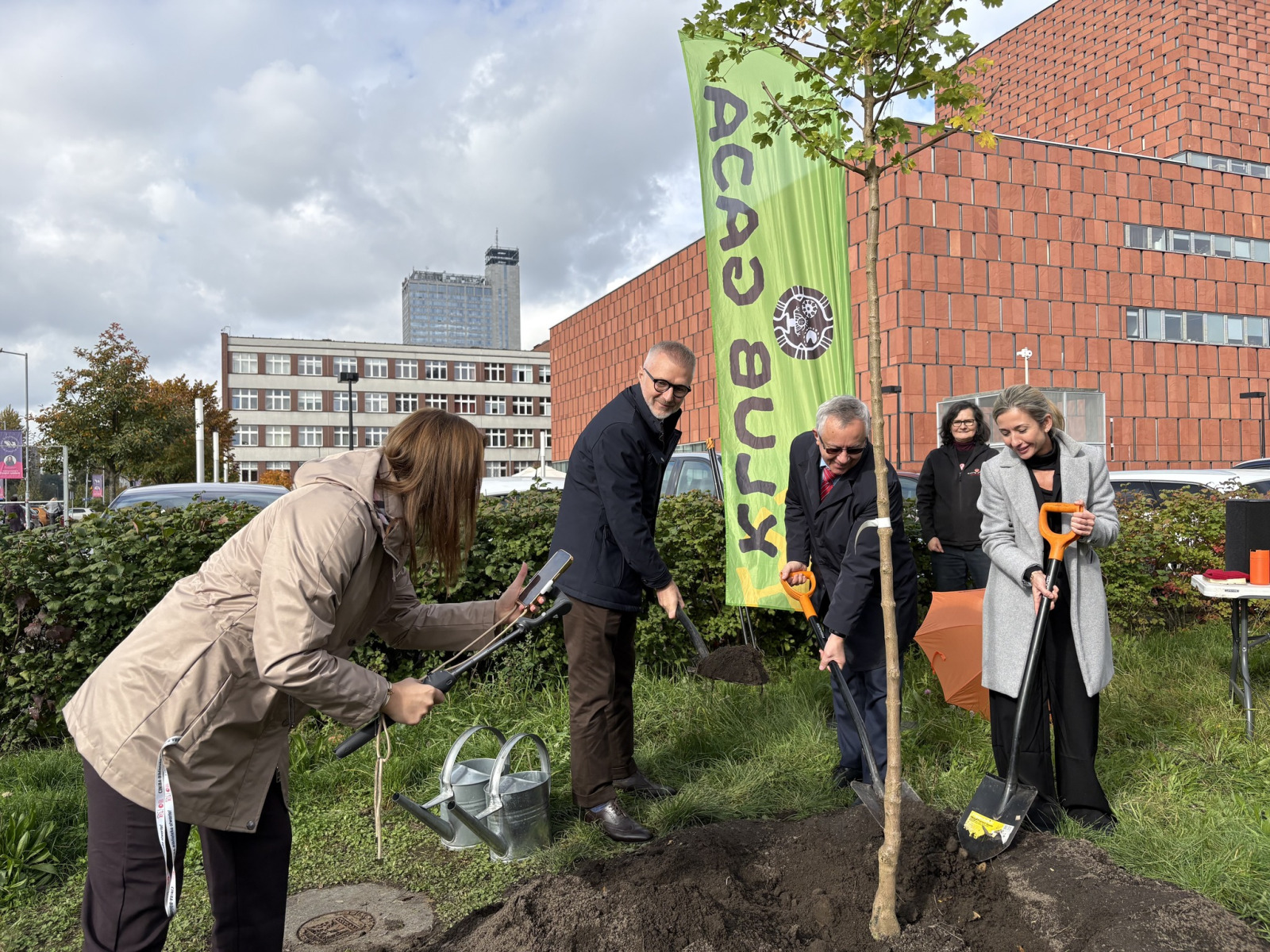 Podczas tegoroczne obchodów Święta Drzewa w Katowicach, które odbyły się 15 października w Ogrodzie Nauk Centrum Informacji Naukowej i Bibliotece Akademickiej Klub Gaja wspólnie z partnerami oraz młodzieżą z Liceum Plastycznego i Technikum COSINUS posadzili klona polnego i krzewy pęcherznicy kalinolistnej w Ogrodzie Nauk. Akcji sadzenia roślin towarzyszyło czytanie wierszy Marii Pawlikowskiej-Jasnorzewskiej. W wydarzeniu wzięli udział zaproszeni goście m.in. Jarosław Makowski wiceprezydent Katowic i przedstawiciele Uniwersytetu Śląskiego. Dziękujemy za współpracę zespołowi CINiB-y oraz ekipie z Zakładu Zieleni Miejskiej, którzy aktywnie zaangażowali się 23. Święto Drzewa w Katowicach. Wydarzenie zostało objęte Patronatem Honorowym Prezydenta Miasta Katowice Marcina Krupy.