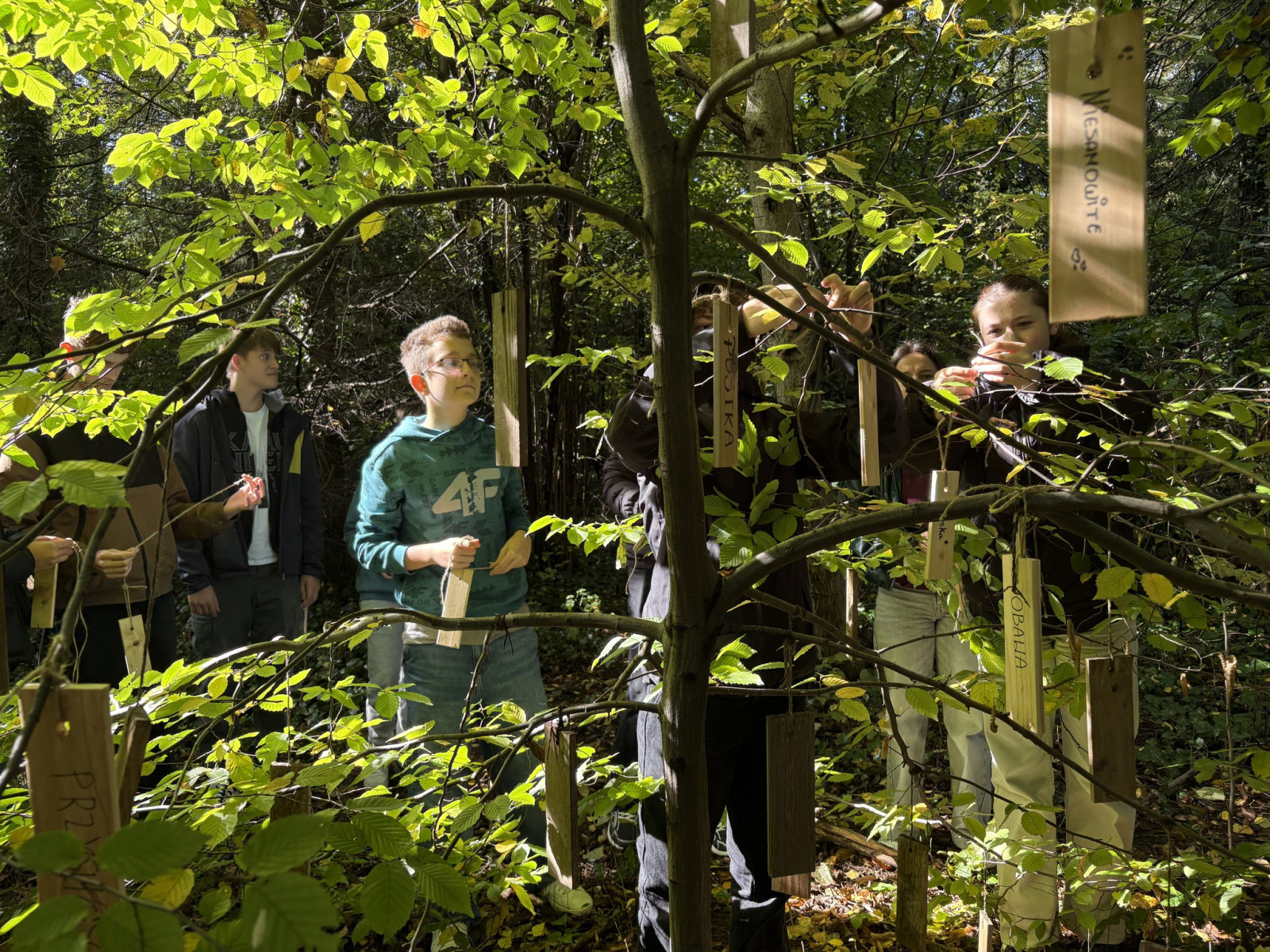 Po akcji sadzenia edukatorki i edukatorzy Klubu Gaja zaprosili uczennice i uczniów ze Szkoły Podstawowej nr 27 i Zespołu Szkół Medycznych w Bielsku-Białej do udziału w różnych warsztatach ekologicznych. Podczas warsztatu „Drzewo – Słowo – Wiatr” inspirowanych wierszem Marii Pawlikowskiej-Jasnorzewskiej, młodzież z „Medyka” pracowała z ciszą, emocją i poezją. Na zakończenie zajęć, na jednym z drzew, powstała z drewnianych tabliczek instalacja artystyczna. Tradycyjnie przygotowano także zajęcia nt. gatunków inwazyjnych połączone z usuwaniem rdestowca ostrokończystego, który jest ogromnym zagrożeniem dla rodzimej roślinności Tajemniczego Ogrodu. Kolejnym tematem zajęć były łąki kwietne i kule z nasionami kwiatów polnych oraz pszczoły. Zajęcia połączone były z pracami porządkowymi m.in. naprawą ogrodzenia wokół pasieki edukacyjnej.