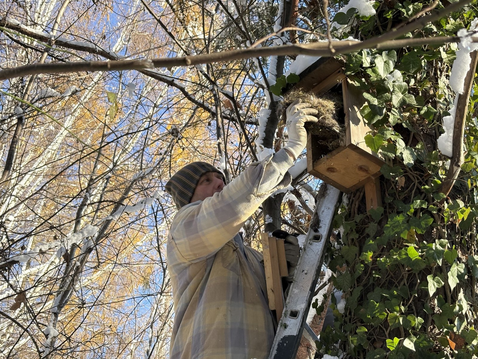 W Tajemniczym Ogrodzie wykonaliśmy także ostatnie jesienne prace porządkowe m.in. posprzątaliśmy część instalacji artystycznych i land artowych, które przeniknął czas, by przygotować przestrzeń ogrodu na wiosenne wydarzenia, wykonaliśmy prace wokół pasieki edukacyjnej, zabezpieczyliśmy posadzone drzewa oraz przeglądnęliśmy i wyczyściliśmy budki lęgowe dla ptaków i nietoperzy.
