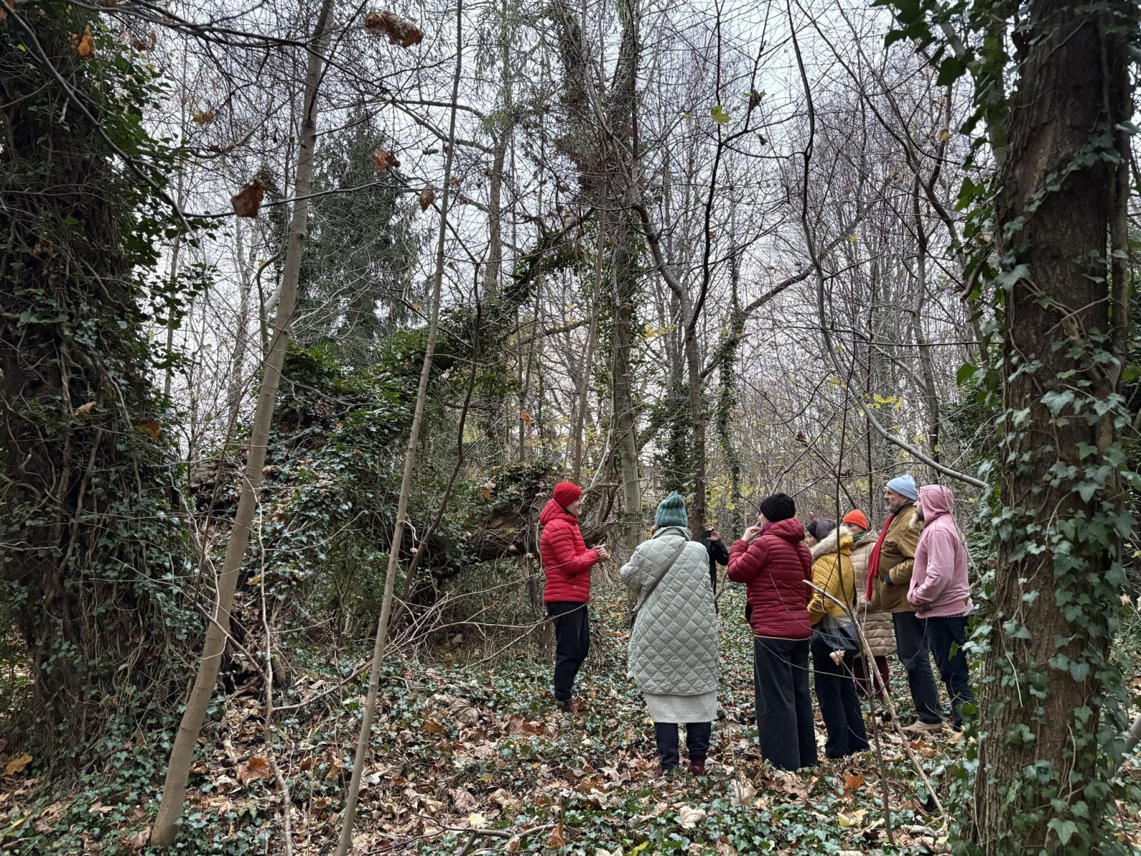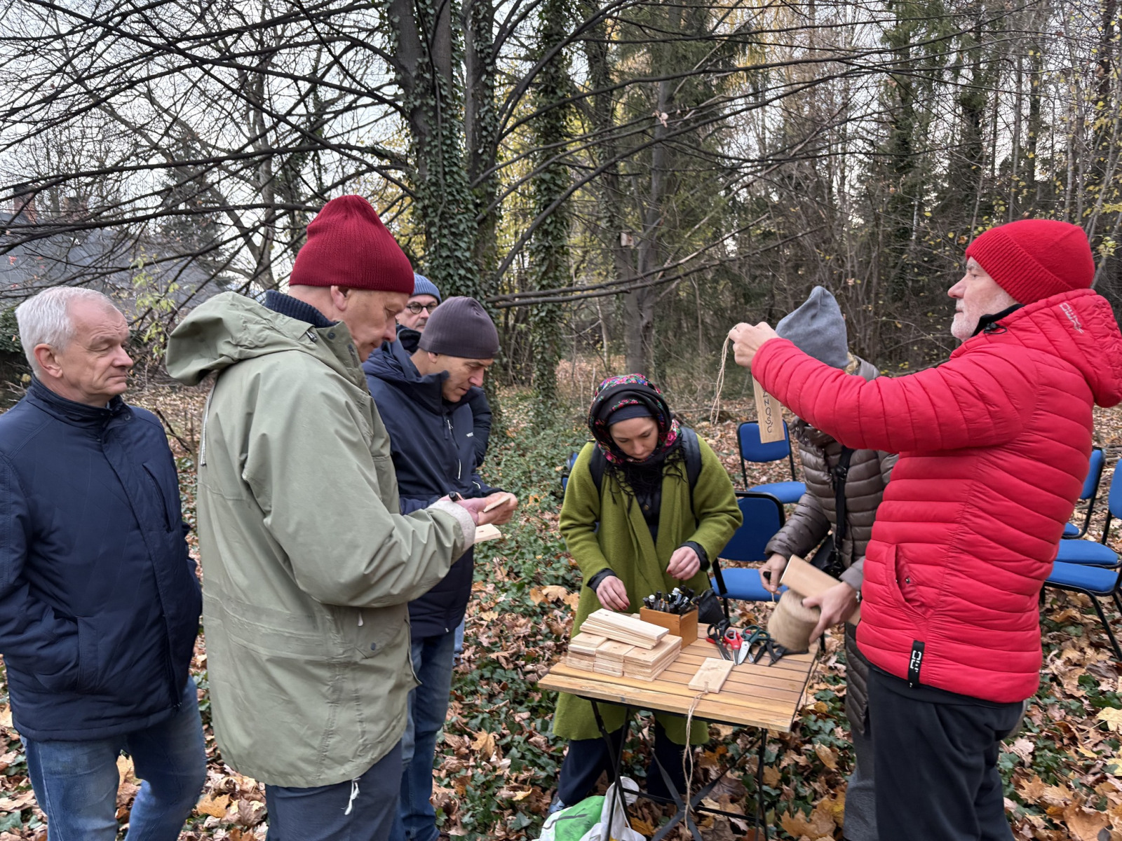 Po południu, 20 listopada, Klub Gaja zaprosił uczestników spotkania Ashoki do odwiedzenia Tajemniczego Ogrodu i uczestnictwa w zajęciach, by zaprezentować pracę stowarzyszenia w działaniu. Spotkanie rozpoczęło się wykładem Jacka Bożka, który opowiedział o procesie społecznym tworzenia Tajemniczego Ogród i planach związanych z Polską Stolicą Kultury 2026 oraz Jacka Proszyka z Gminy Wyznaniowej Żydowskiej, który przedstawił kontekst historyczny i kulturowy miejsca. Kolejnym punktem były warsztaty na temat pszczół, które poprowadził Patryk Słotwiński – opiekun pasieki edukacyjnej Klubu Gaja w Tajemniczym Ogrodzie. Natomiast Jacek Bożek zaprosił wszystkich na spacer w milczeniu, który był częścią warsztatów Słowo – Drzewo – Wiatr i które zakończyły się wspólną instalacją artystyczną. Słowa napisane na drewnianych tabliczkach przez uczestniczki i uczestników warsztatów wpisały się w jesienny krajobraz Tajemniczego Ogrodu.